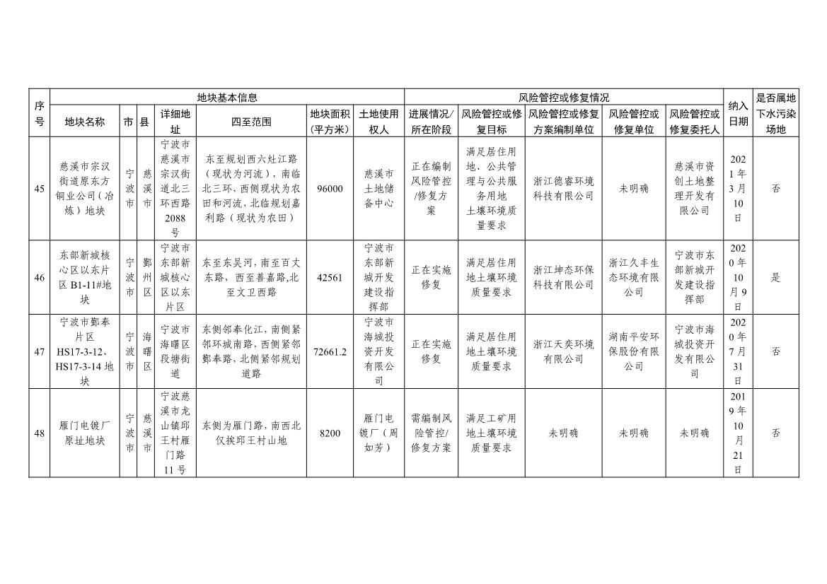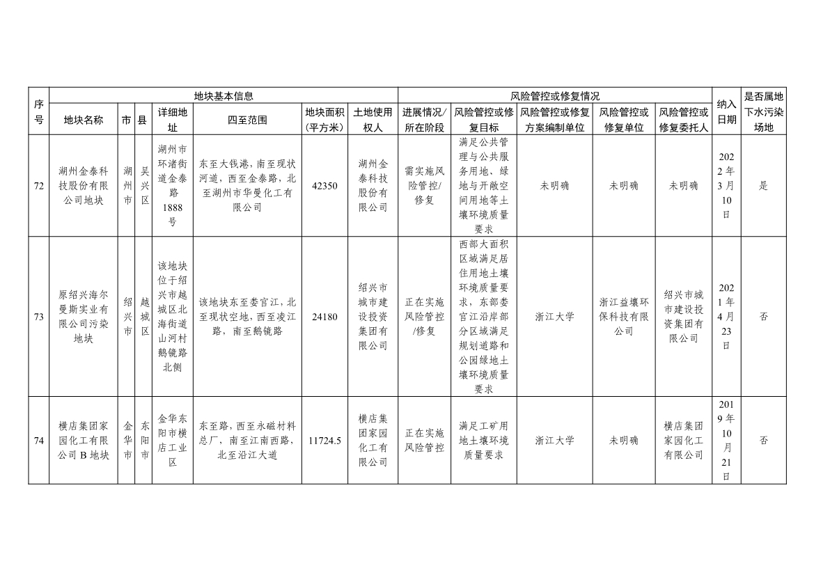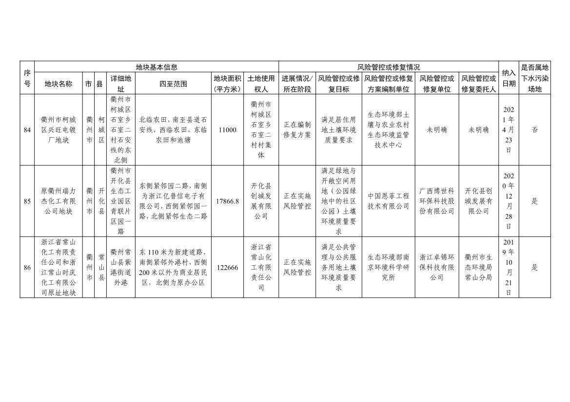 據(jù)悉,4月24日,浙江省生態(tài)環(huán)境廳發(fā)布浙江省建設(shè)用地土壤污染風(fēng)險(xiǎn)管控和修復(fù)名錄(含地下水污染場(chǎng)地)與浙江省建設(shè)用地土壤污染風(fēng)險(xiǎn)管控和修復(fù)名錄移出清單(2022年4月24日更新),詳情如下: