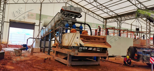 淋洗分選系統(tǒng)指借助能促進(jìn)土壤環(huán)境中污染物溶解或遷移的化學(xué)/生物化學(xué)溶劑對(duì)污染土進(jìn)行洗潔處理,將附著于土壤顆粒表面固相低濃度污染物轉(zhuǎn)移至液相,使污染元素進(jìn)入液相,便于后續(xù)集中處理。同時(shí)將附著于土壤顆粒表面的高污染土壤顆粒分級(jí)分類(lèi)處理。洗脫廢水再進(jìn)入污水處理系統(tǒng)對(duì)污染物做進(jìn)一步回收處理,最終實(shí)現(xiàn)土壤修復(fù)目的。淋洗溶液主要包括: 清水,主要用于溶于水的重金屬離子的去除;無(wú)機(jī)溶劑,如酸、堿、鹽,通過(guò)酸解、絡(luò)合或離子交換作用來(lái)破壞土壤表面官能團(tuán)與污染物的結(jié)合;人工螯合劑及檸檬酸、蘋(píng)果酸等天然螯合劑,主要用于重金屬的去除。