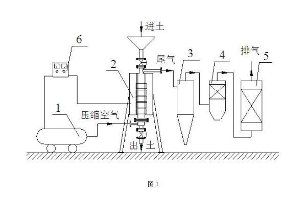 尾氣處理系統(tǒng)由旋風(fēng)除塵器 3、除濕器 4 和吸附塔 5 組成。旋風(fēng)除塵器 3、除濕器 4 和吸附塔 5 均由碳鋼材料制作。由立式解吸爐排出的尾氣首先進(jìn)入旋風(fēng)除塵器 3,尾氣中 的顆粒物在離心力的作用下與氣流分離而被捕集下來 ;氣流離開旋風(fēng)除塵器 3 后進(jìn)入除濕 器 4。除濕器 4 內(nèi)裝有規(guī)整填料,除濕器 4 的作用主要是去除空氣及污染土壤因高溫加熱 揮發(fā)進(jìn)入尾氣中的水分,以保證后續(xù)尾氣吸附處理的高效運行。除濕后的尾氣流入吸附塔 5 中,吸附塔 5 內(nèi)裝有自行制備的高性能生物質(zhì)環(huán)境吸附材料或活性炭,尾氣中的揮發(fā)性 / 半揮發(fā)性有機(jī)物被吸附劑吸附,吸附處理后尾氣可達(dá)標(biāo)排放。處理系統(tǒng)。