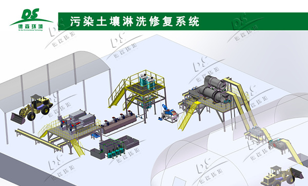 土壤淋洗修復主要是借助能促進土壤中污染物溶解或遷移的化學/生物溶劑,通過一系列物理、化學的綜合處理工藝對污染土壤進行洗潔修復處理,將附著于土壤顆粒表面的重金屬由固相低濃度污染物轉移至液相,以便于后續(xù)集中處理。土壤中砂石骨料經淋洗分級處理后可回收利用,淋洗泥漿經脫水后泥漿固料若檢驗達標可安全回填、或進入熱脫附修復系統(tǒng)進一步處理,脫水后廢液進入水處理系統(tǒng)集中處理。整套淋洗修復系統(tǒng)可最大程度實現(xiàn)對污染土壤的減量化綜合處理。