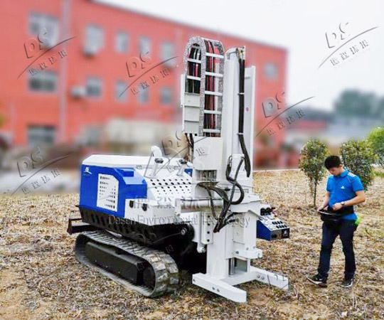 528LS型土壤采樣機(jī)是德森環(huán)境自主研發(fā)生產(chǎn)的土壤取樣裝備,是專門針對土壤修復(fù)行業(yè)的高度集成化鉆機(jī),配備70P鉆頭、專業(yè)微波打擊技術(shù)、大功率沖擊動(dòng)力、提升了采樣效率。528LS型土壤采樣機(jī)可實(shí)現(xiàn)遠(yuǎn)距離無線遙控,行走時(shí)可以高、低速切換,三角形行走履帶裝置,場地通過性更強(qiáng); 設(shè)備采用直推方式將套管推入土壤,無需注水,能夠連續(xù)快速地取出不受外界干擾的特定深度的柱狀土樣品;替換旋噴模塊后,可直接用于土壤和地下水修復(fù)。